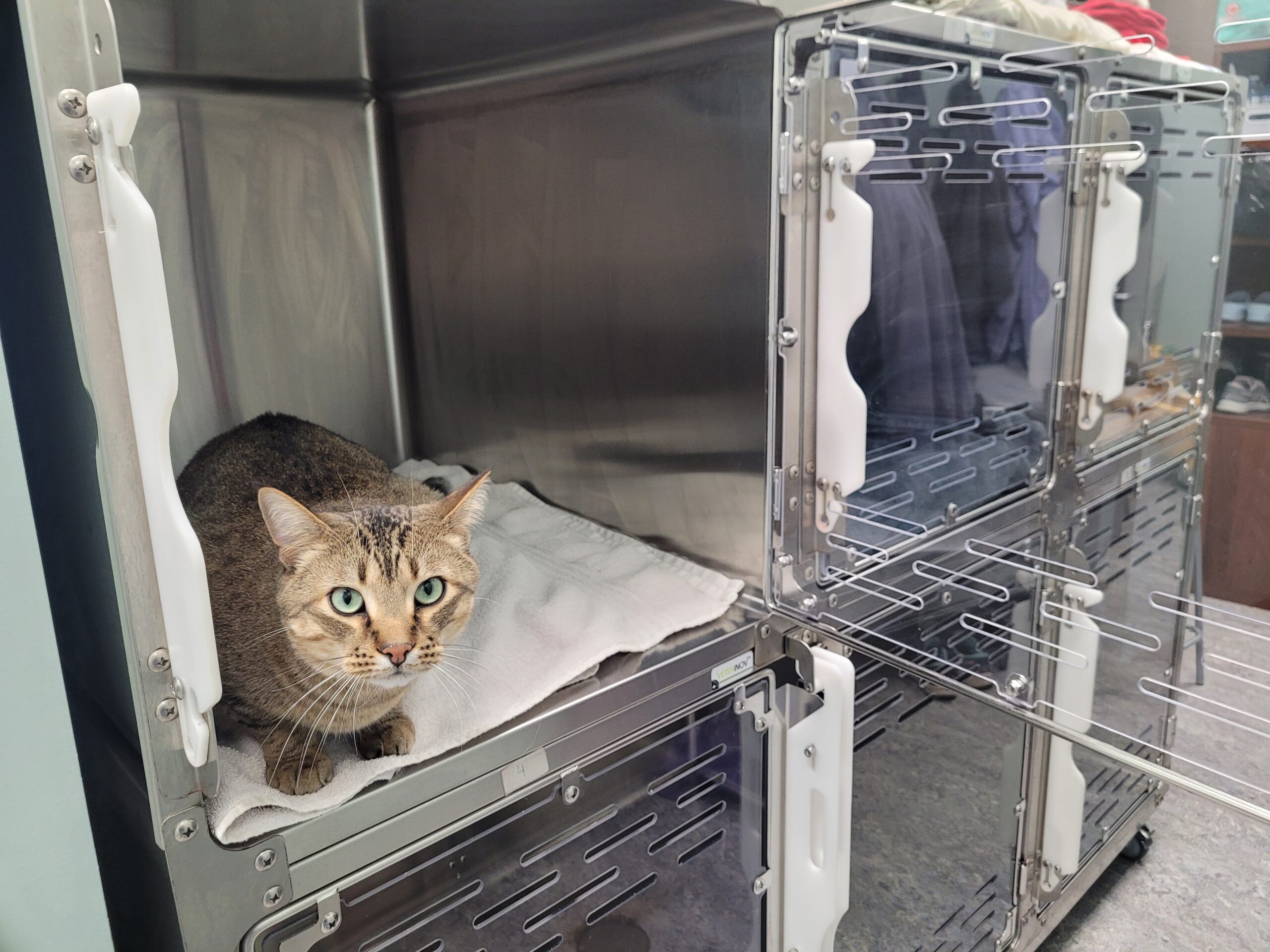 Hébergement optimal en fonction des besoins des chats, permettant de grand espaces distincts pour repos et pour la litière.